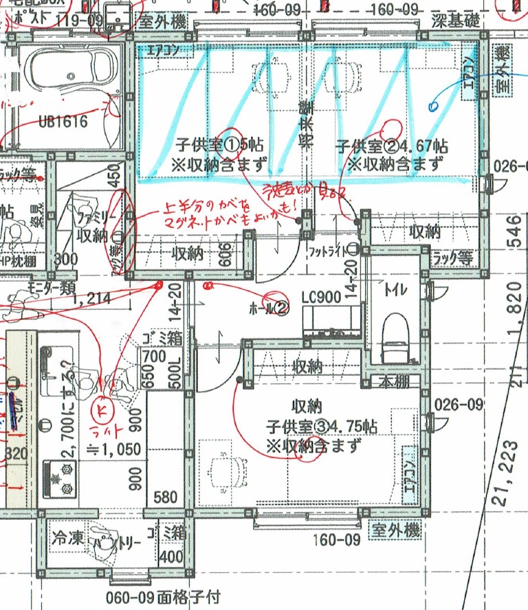 - 大学の建築学科卒業(建築士免許は取得されてない)の奥様は、ビルダーから提案された間取りは気に入らず、自分で考えたけど、上手くいかず、これ以上ムリかと、半ばあきらめていた。